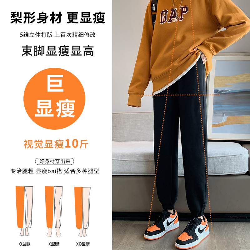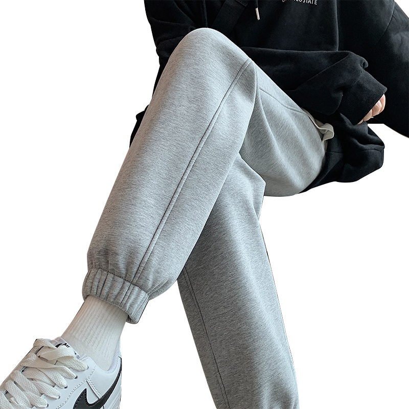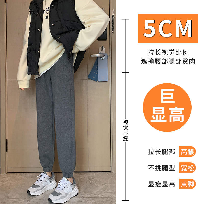 子 直筒外穿加长灯笼休闲裤 加绒运动裤 女秋冬加厚灰色宽松束脚卫裤