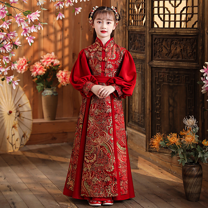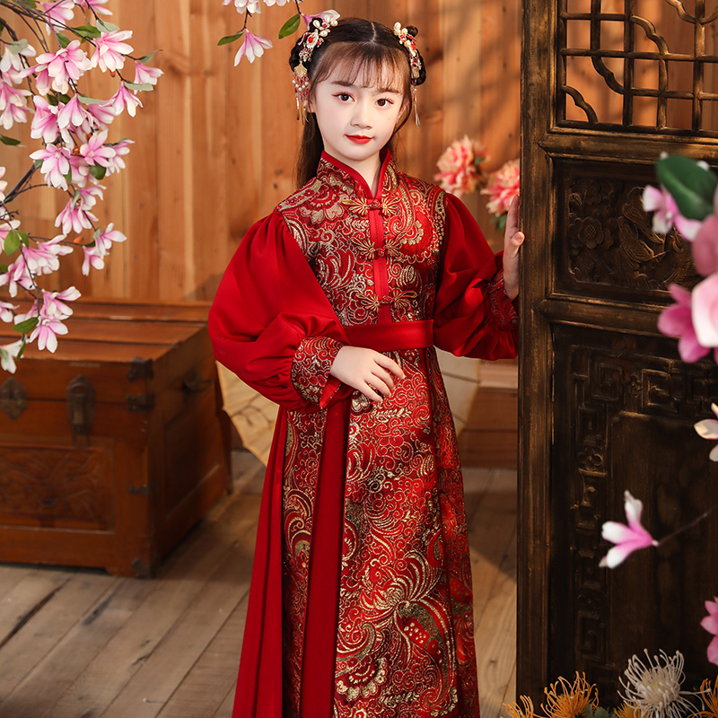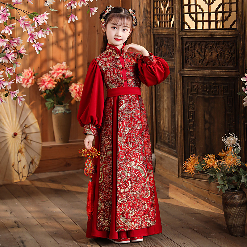 中国风冬季 拜年服女童汉服冬款 女宝宝古装 儿童过年服新年装 唐装