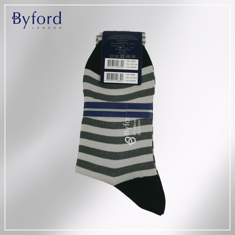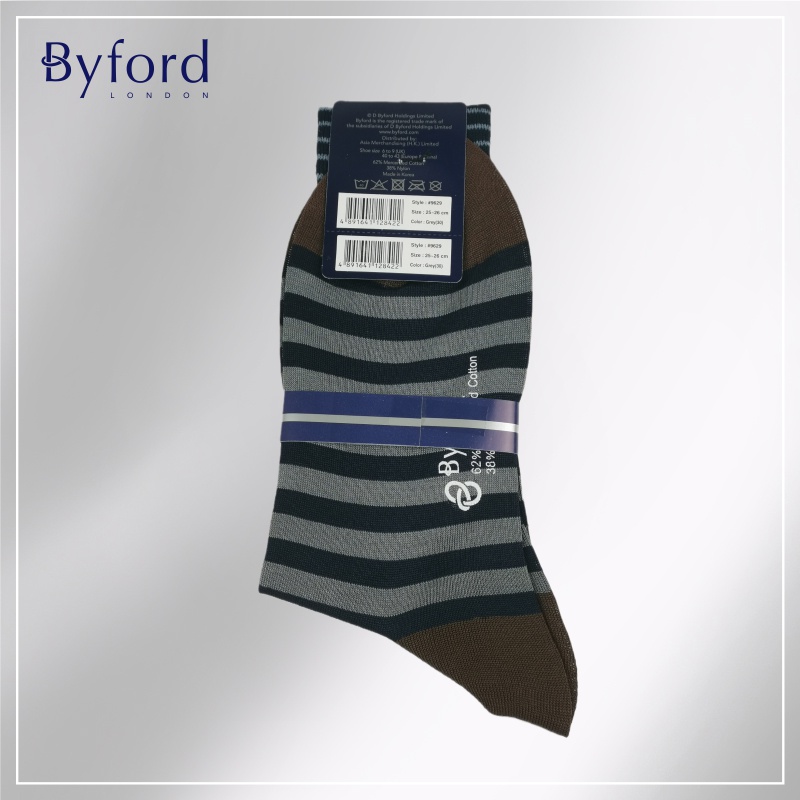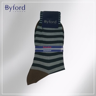 BYFORD 高针织丝光棉袜商务条纹休闲中筒男袜9629 百富韩国产男士