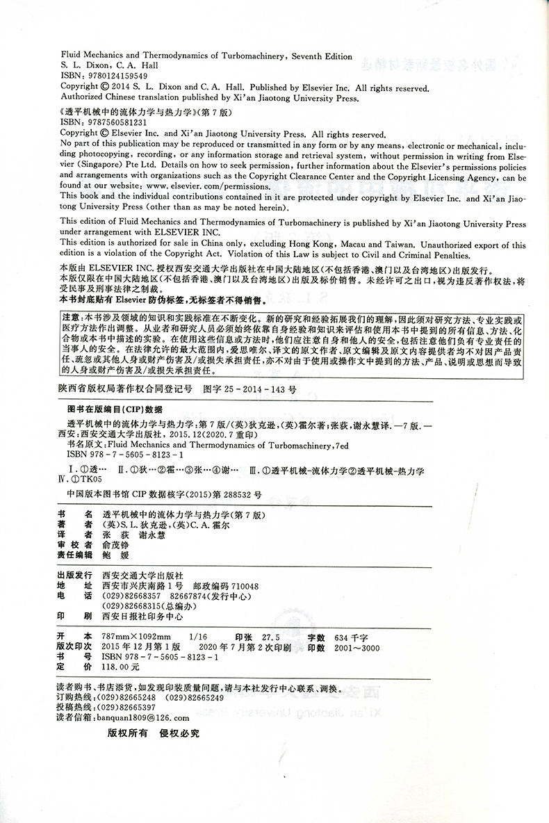 流体力学与热力学第7版 2020新版 透平机械中 社 爱思唯尔国外名校精选大学教育教材透平机械流体狄克逊霍尔著 现货西安交通大学出版