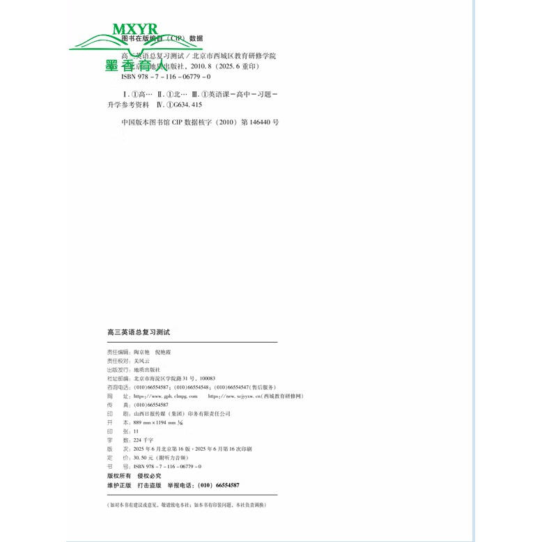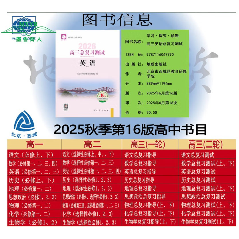 英语 高三总复习测试 第16版 北京市西城区教育研修学院编 高3高考英语总复习新课程高考总复习丛书 2026 学习探究诊断 北京西城