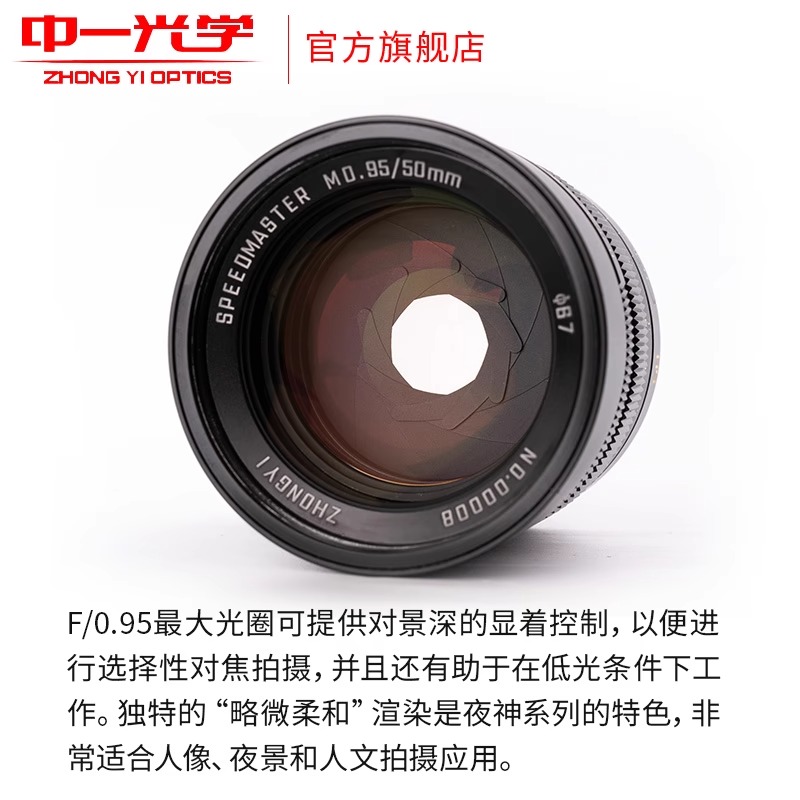 中一光学50mm f0.95全画幅适用于徕卡M口微单大光圈人像定焦镜头