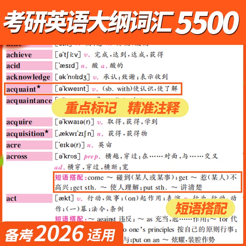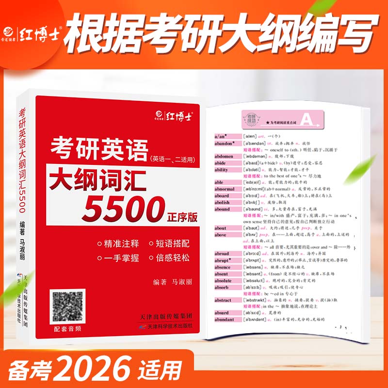 大纲词汇5500组合历年真题答案详解阅读全文翻译大纲词汇5500顺序版 备考2026考研英语一历年真题 乱序版 晋远官方直营