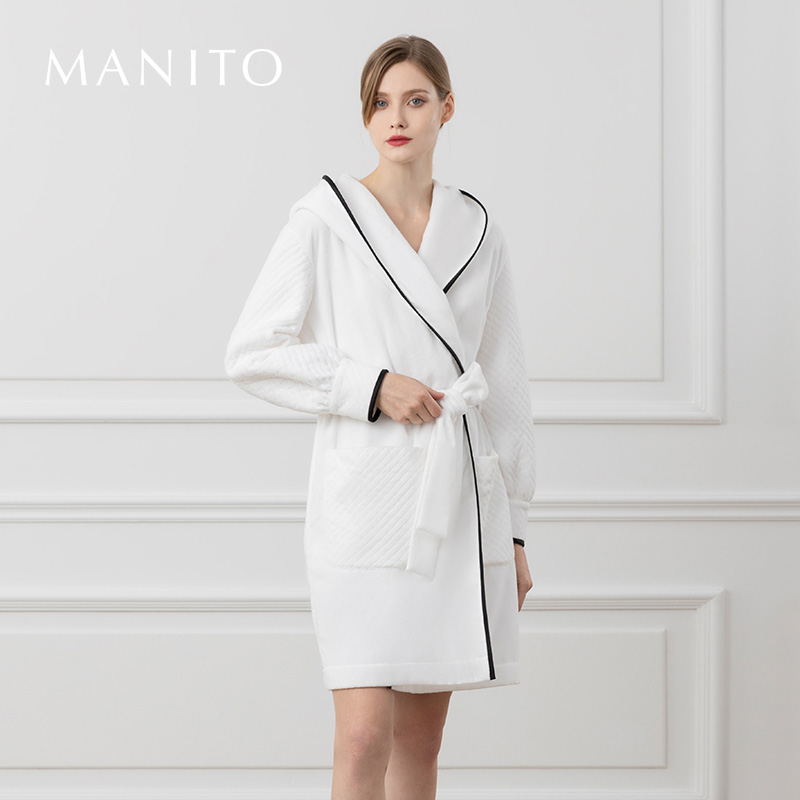Terry绗缝连帽睡袍男女真丝桑蚕丝睡衣 Silk MANITO 曼尼陀Brimmy