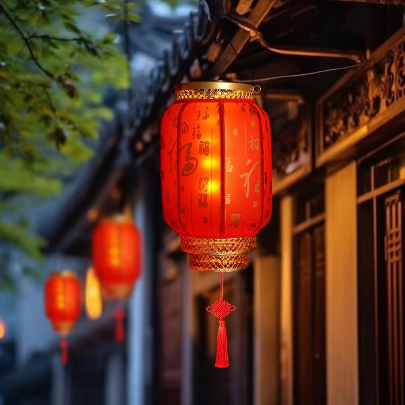 2025新款 太阳能红灯笼大门口一对阳台户外蛇年春节手工灯笼挂饰