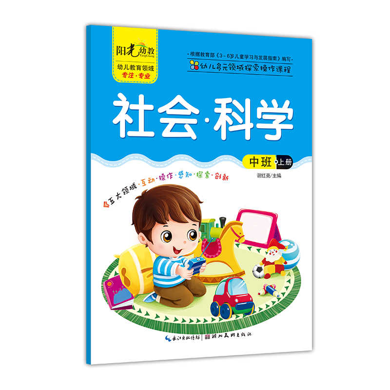 语言表达 思维数学 6岁 幼儿多元 幼儿园课程 音乐美术全套5册五大领域3 领域探索操作课程中班上册 社会科学 阳光幼教 健康成长