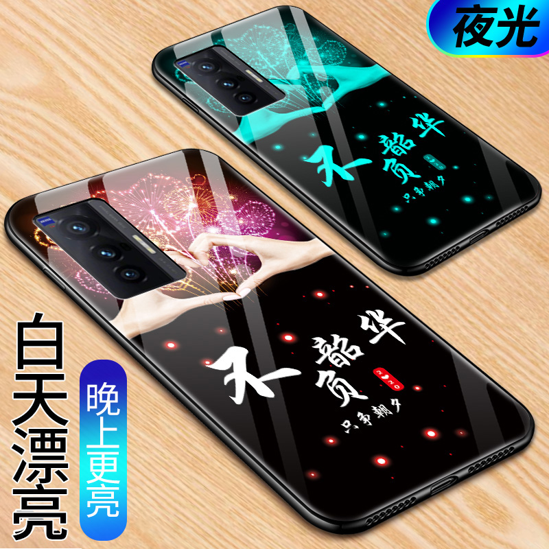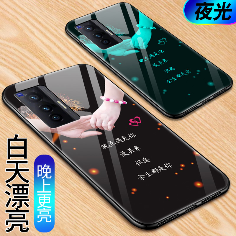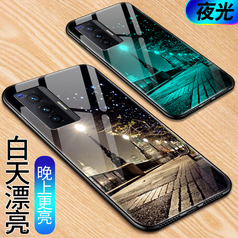 vivoX70手机壳voviX70Pro手机壳5G夜光玻璃x7Opor硅胶软边硬壳p0r全包防摔vovox情侣闺蜜ins个性 镜面vivi创意