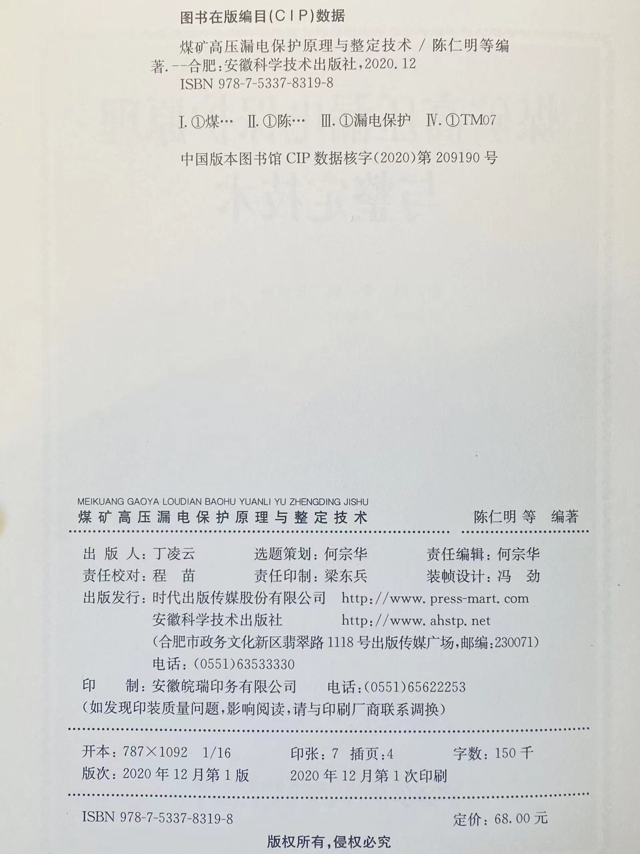 煤矿高压漏电保护原理与整定技术陈仁明2020版 社 煤矿电工书籍技术手册安徽科学技术出版