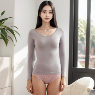 秋衣秋裤 纯棉保暖内衣女蕾丝边肤色棉毛衫 全棉打底保暖衣上衣薄款