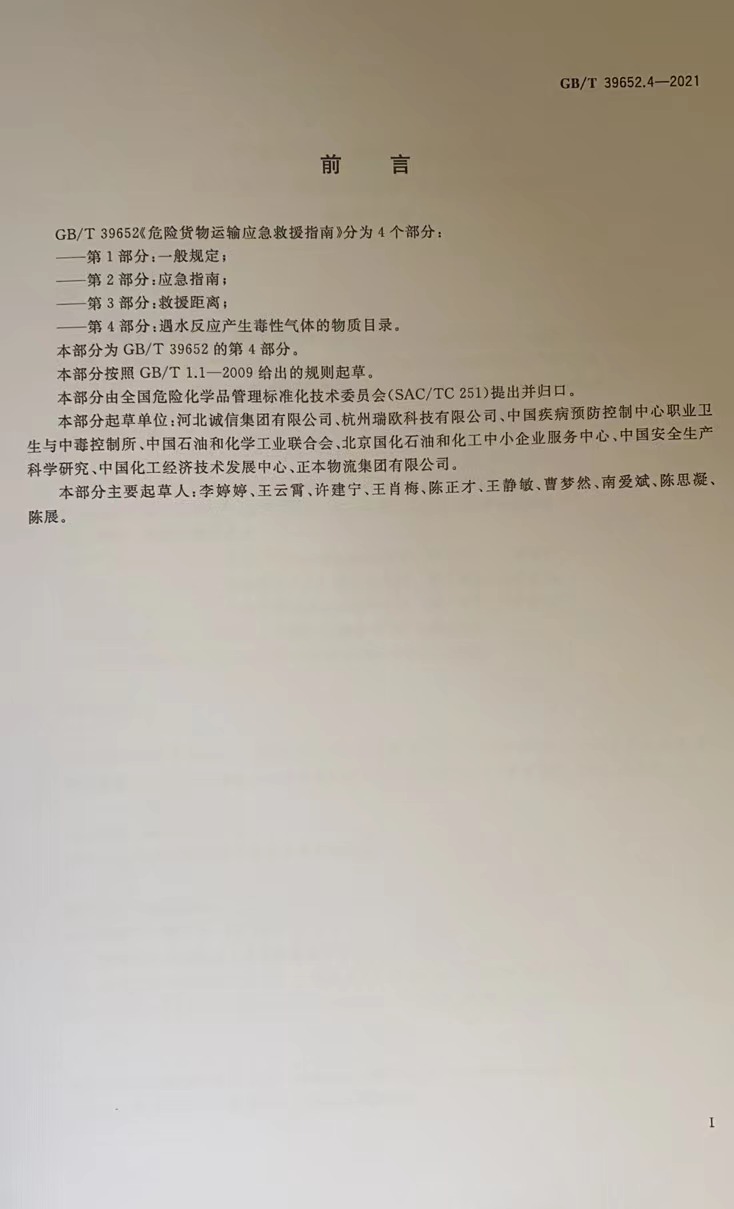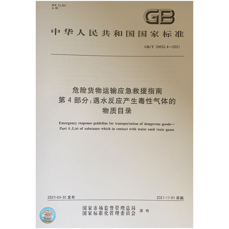 危险货物运输应急救援指南 2021 第4部分 遇水反应产生毒性气体 标准规范书籍 物质目录 T39652.4