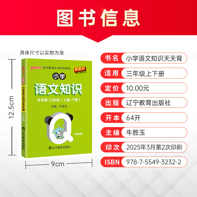 2026新版 小学三年级语文基础知识点手册全国通用天天背Qbook语文上下全一册同步词语手册资料包知识点大全专项训练册PASS绿卡图书