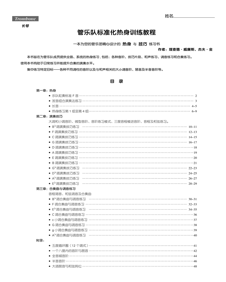 全新标准化教程 引进 理查德·威廉斯 杰夫·金编著 社自营 管乐队标准化热身训练教程·长号 上海音乐出版 原版