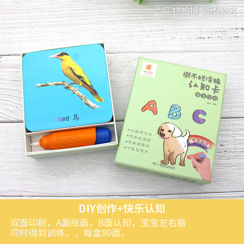 3岁幼儿绘本益智书籍3 婴儿启蒙认知卡片0 6岁宝宝涂色填色本画画书简笔画大全 宝宝撕不烂涂鸦认知卡·英文字母 阳光宝贝