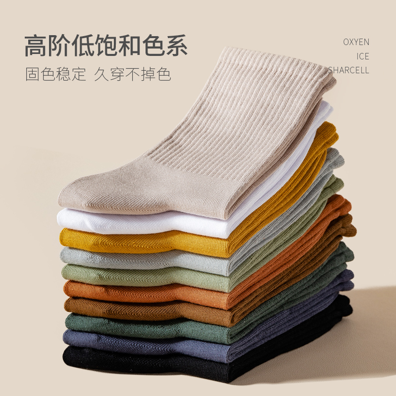 男士 款 白色长袜 中筒袜防臭吸汗运动长筒篮球四季 袜子男纯棉秋季