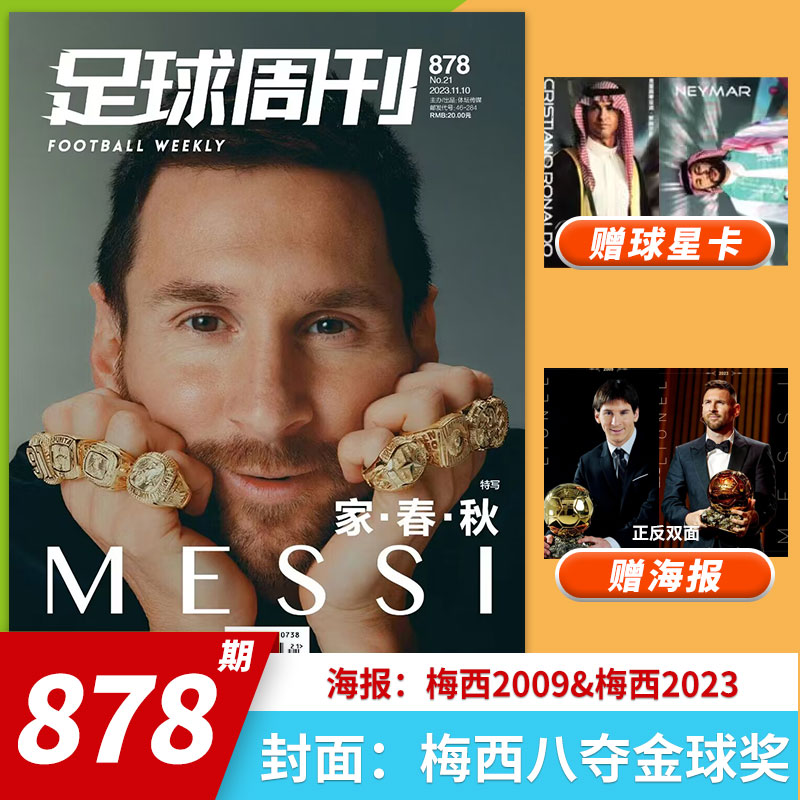 金球王梅西全体育杂志2023年11月上足球周刊第879期梅西八夺金球奖重磅专题梅西金球奖纪念特辑 官方海报 赠梅西官方明信片10张
