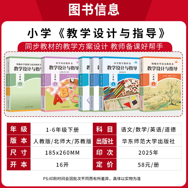 2025新版 小学教科书教学设计与指导一二三四六年级下册语文数学道德与法治统编人教北师大苏教师备课参考用书温儒敏陈先云解读教材