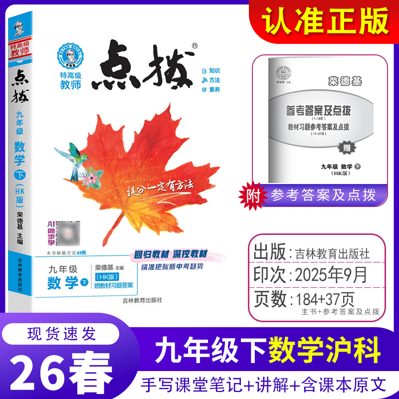 荣德基特高级教师点拨九下教材解读 初三9年级上下册同步讲解训练辅导书 2026版 点拨九年级上下册数学语文英语物理化学全套人教版