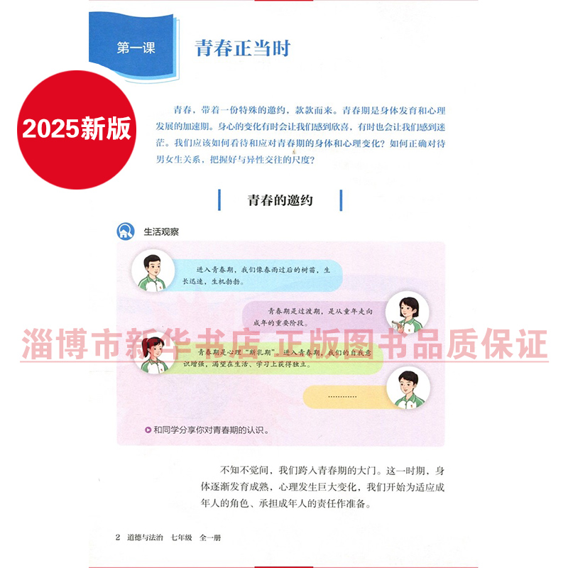 2025新改版 义务教育教科书7年级上下学期道法课本人民教育出版 五四制七年级全一册道德与法治人教版 初中教材人教版 社 教材