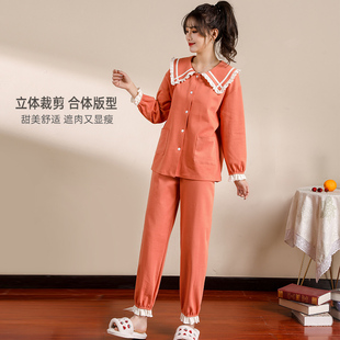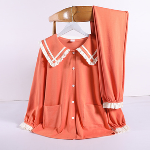 秋季 睡衣女韩版 可外穿针织开衫 纯棉长袖 两件套春秋家居服 宽松大码