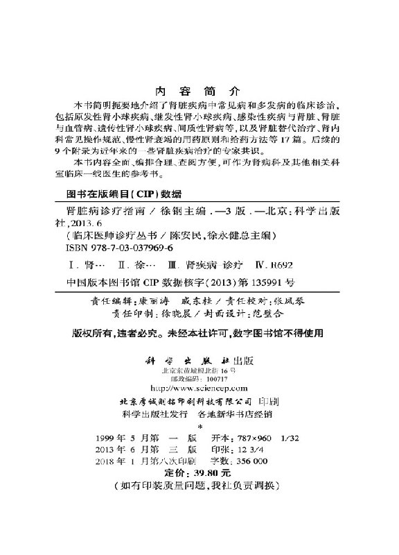 诊断与治疗 肾脏病学 第3版 肾脏感染性疾病 先天性及遗传性肾病 徐刚编著 肾脏病诊疗指南 第三版 书籍 正版 肾功能衰竭 现货