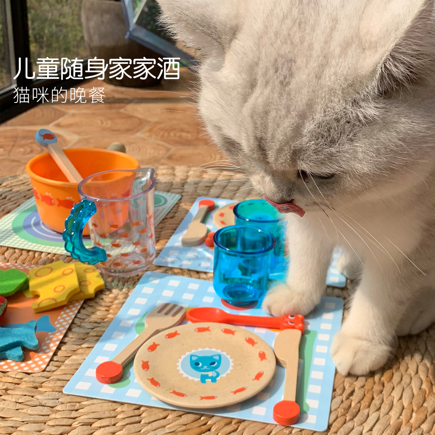 3岁 情景角色扮演玩具女孩2 Djeco儿童过家家厨房猫咪 晚餐套装