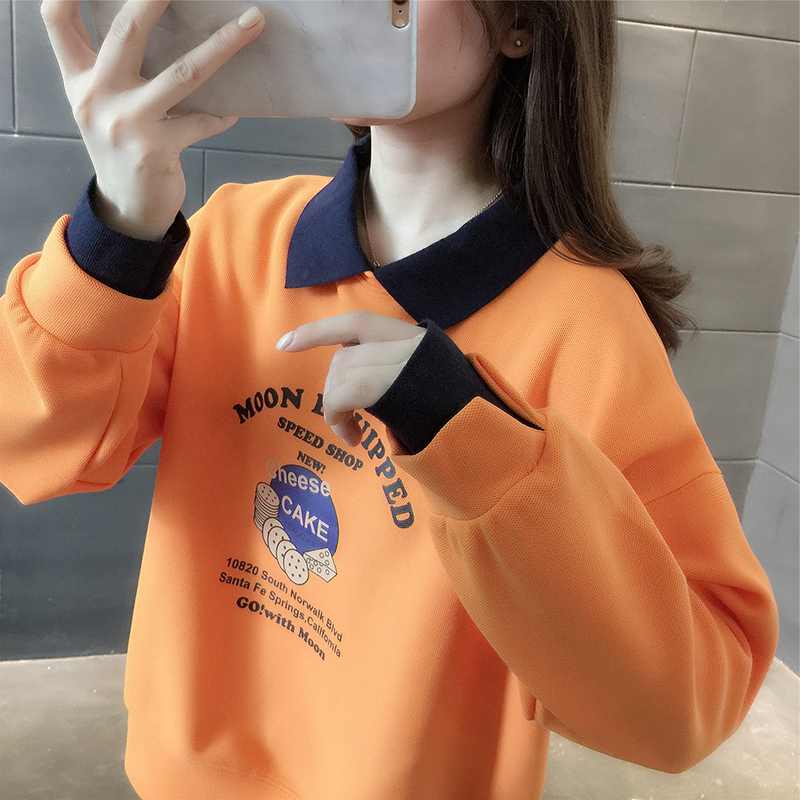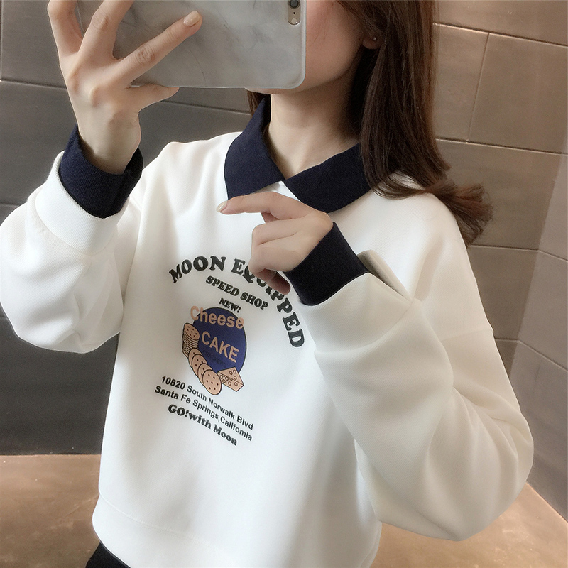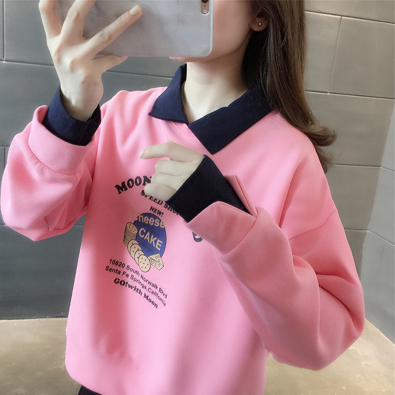 小个子薄款 宽松翻领polo衫 假两件上衣服外套 韩版 早秋卫衣女春秋季