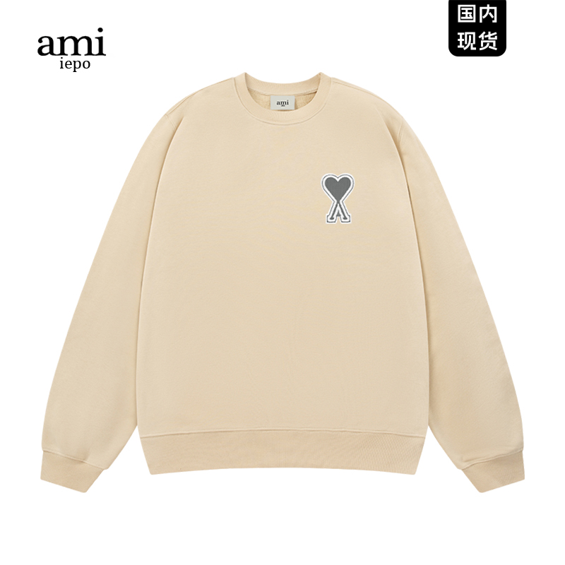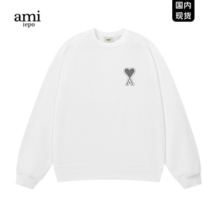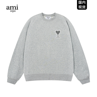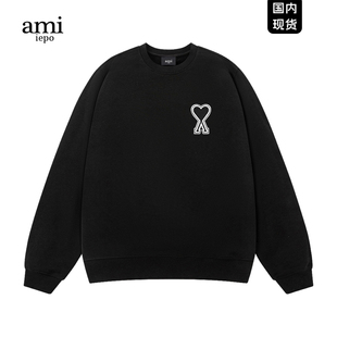 运动休闲装 Ami 潮牌新款 春秋季 上衣 iepo官方酒红色卫衣男女情侣款
