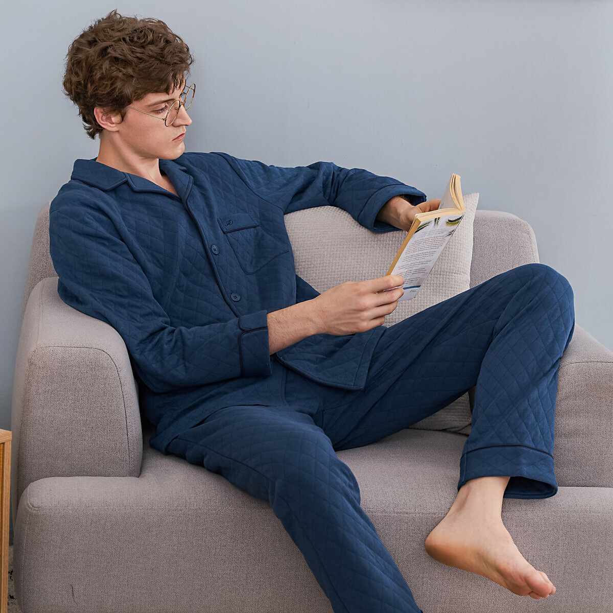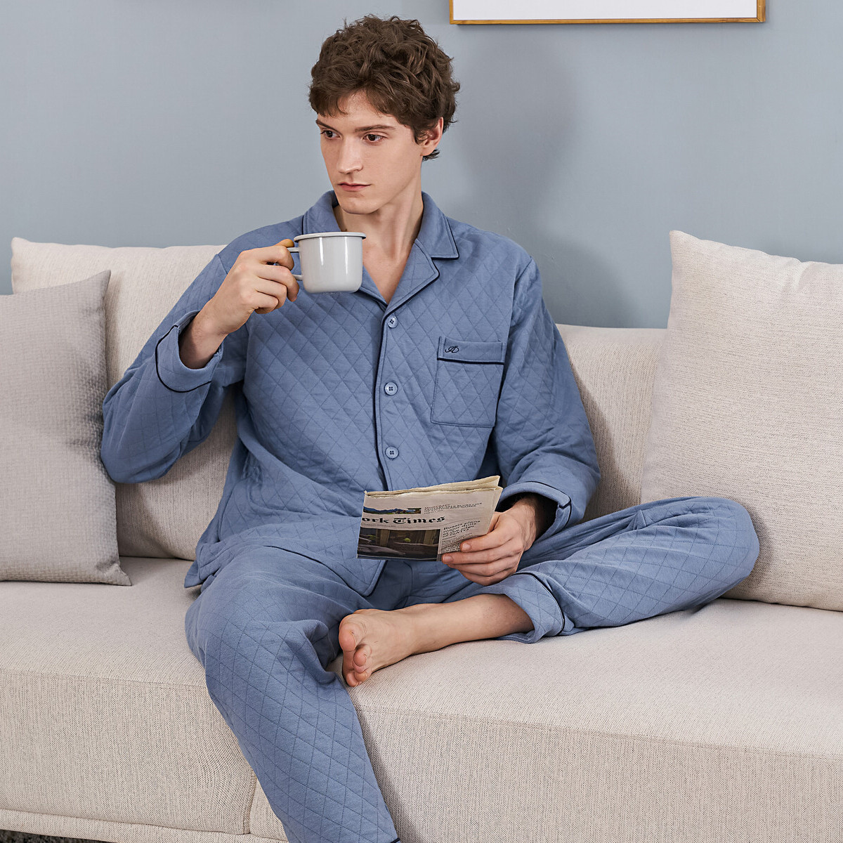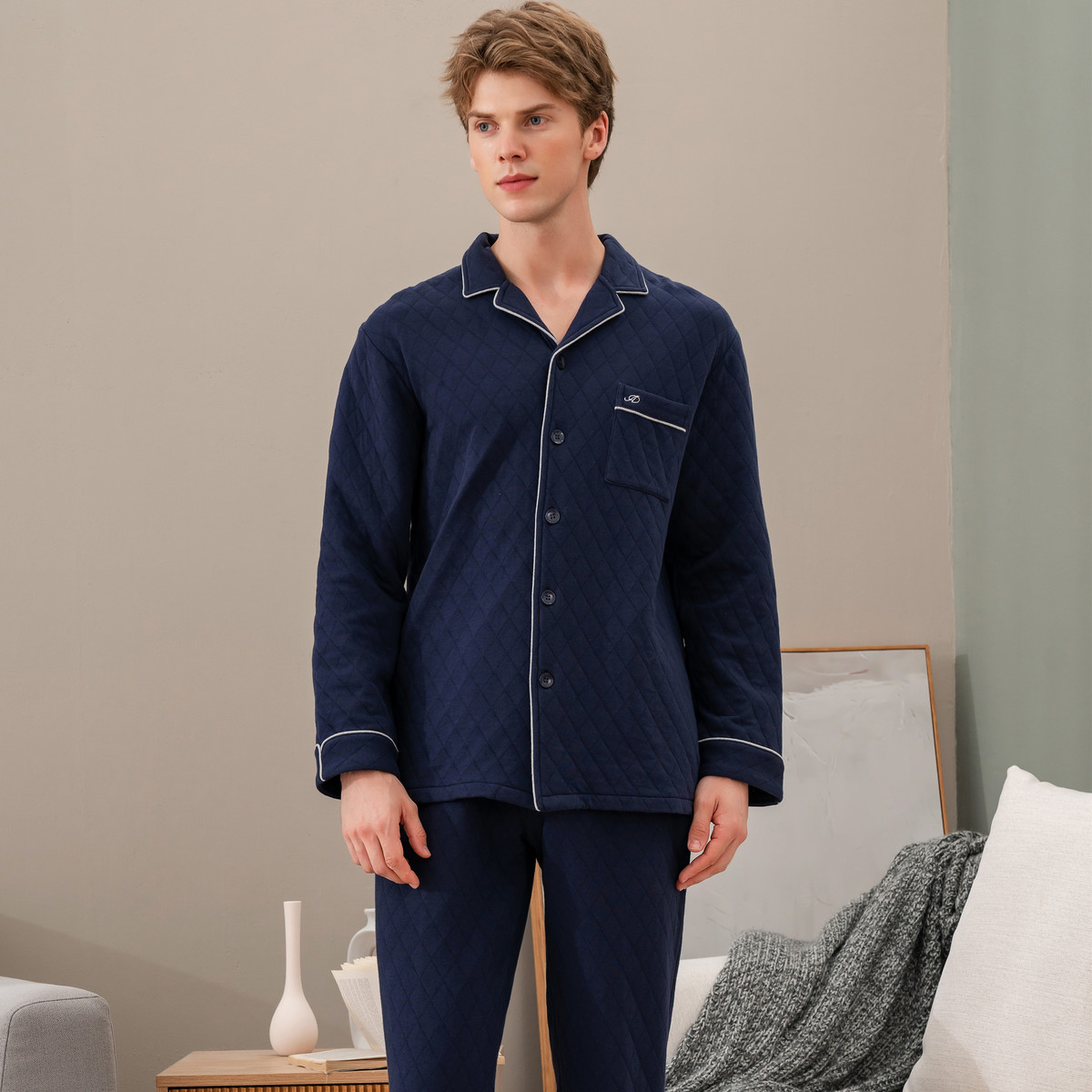 夹层夹丝绵长袖 秋鹿 睡衣秋冬款 纯棉男士 空气棉 清仓仅剩XXL