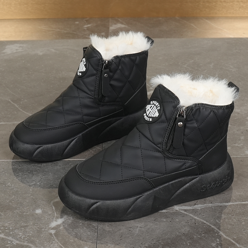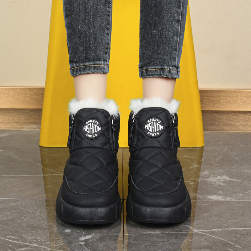 2025冬季 运动鞋 加绒加厚防滑雪地靴 女大码 双拉链一脚蹬东北大棉鞋