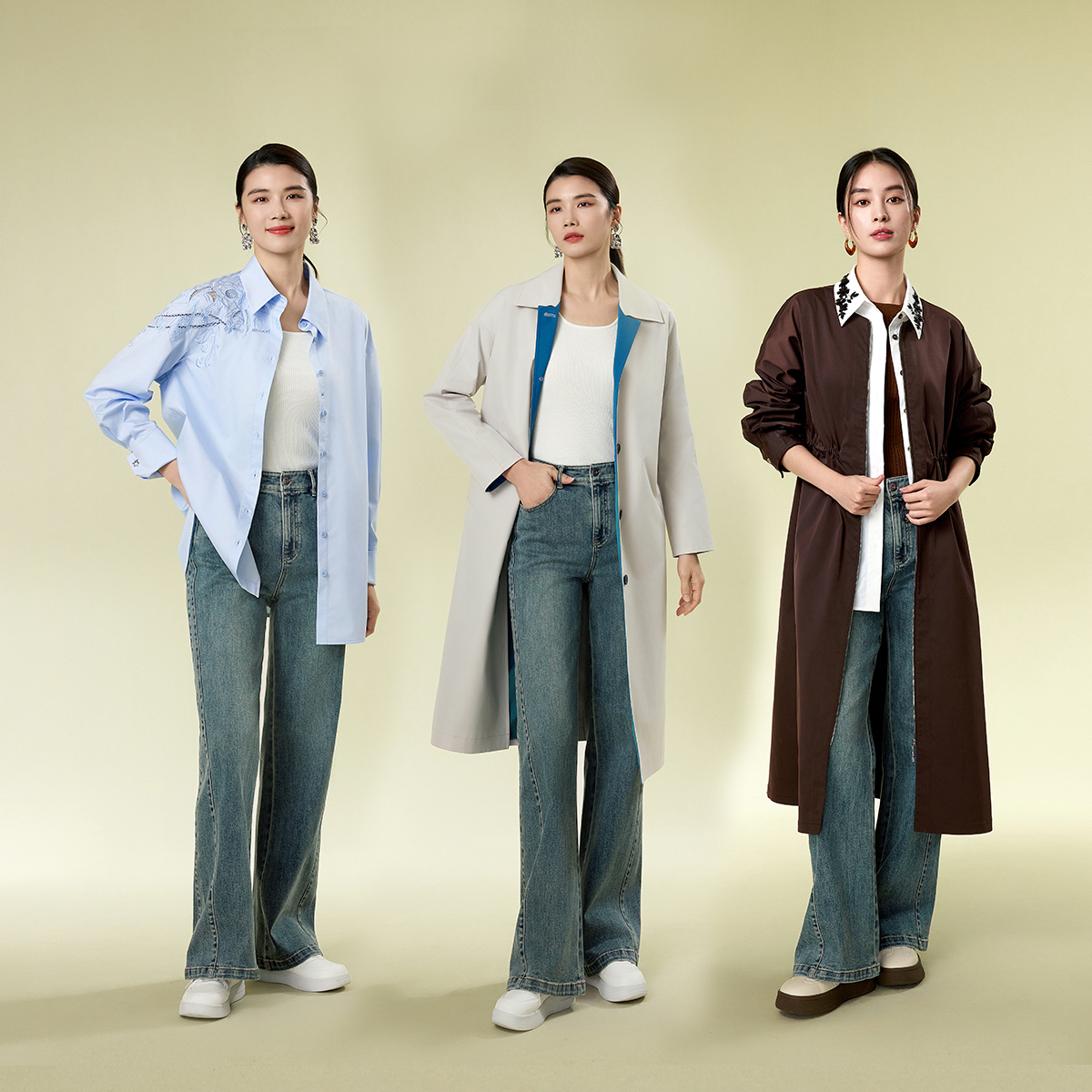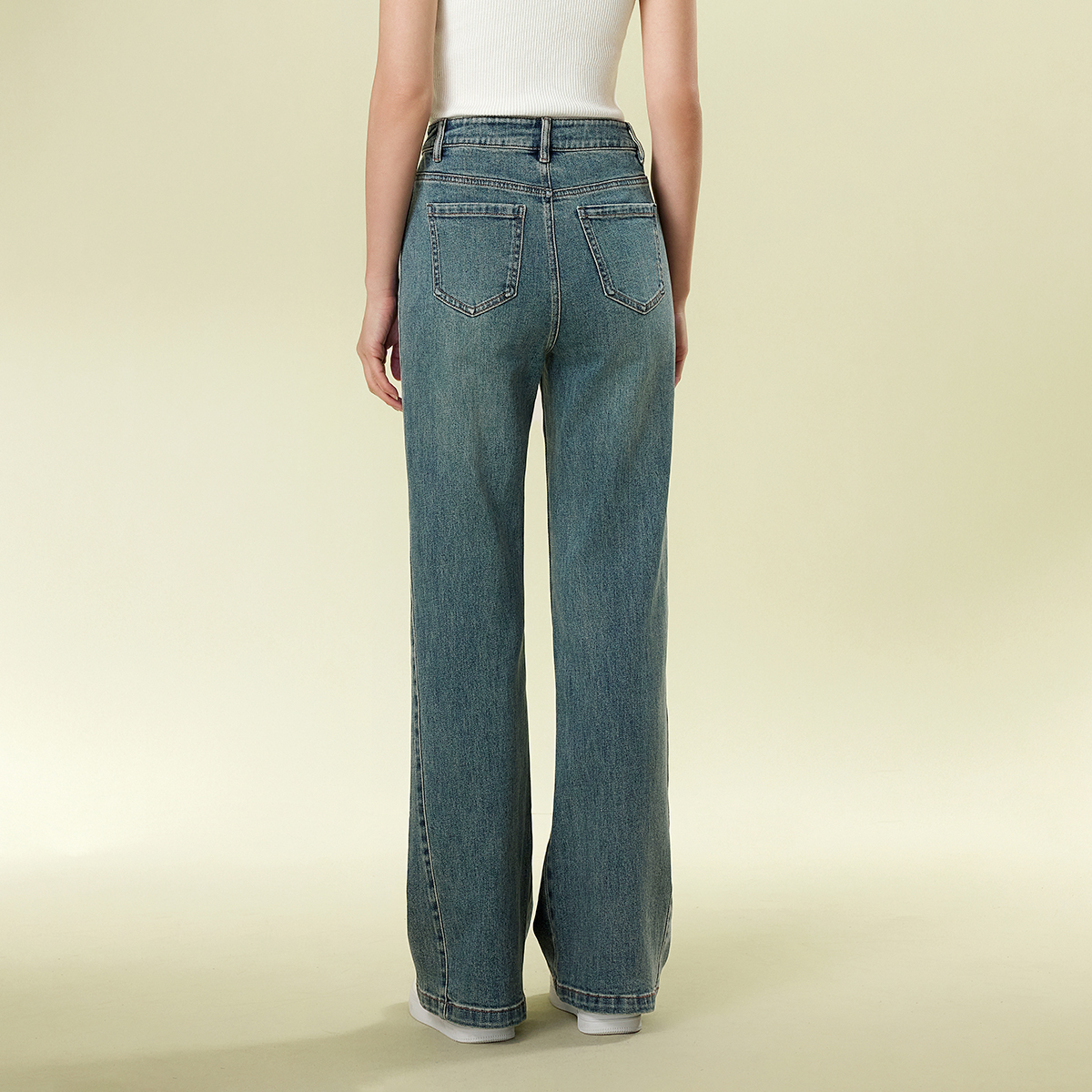 时尚 2025秋季 口袋小标宽松阔腿裤 裤 504791 子女装 三福牛仔长裤