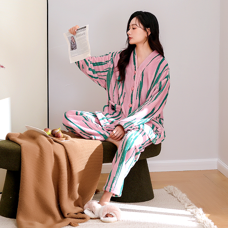 珊瑚绒可外穿保暖法兰绒家居服加绒加厚冬季 秋冬新款 睡衣女士套装