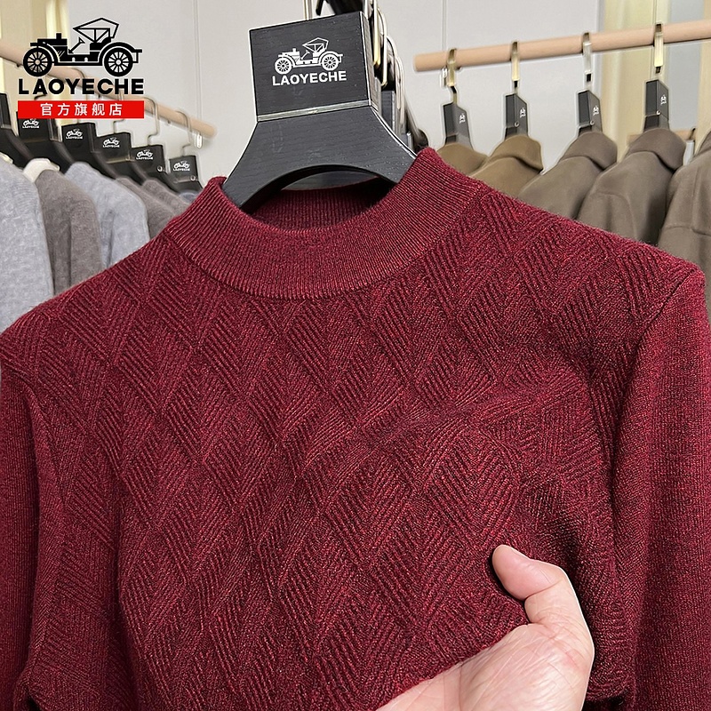 含羊毛秋冬毛衫 红豆毛衣男款 纯色打底加绒保暖针织衫 太阳绒