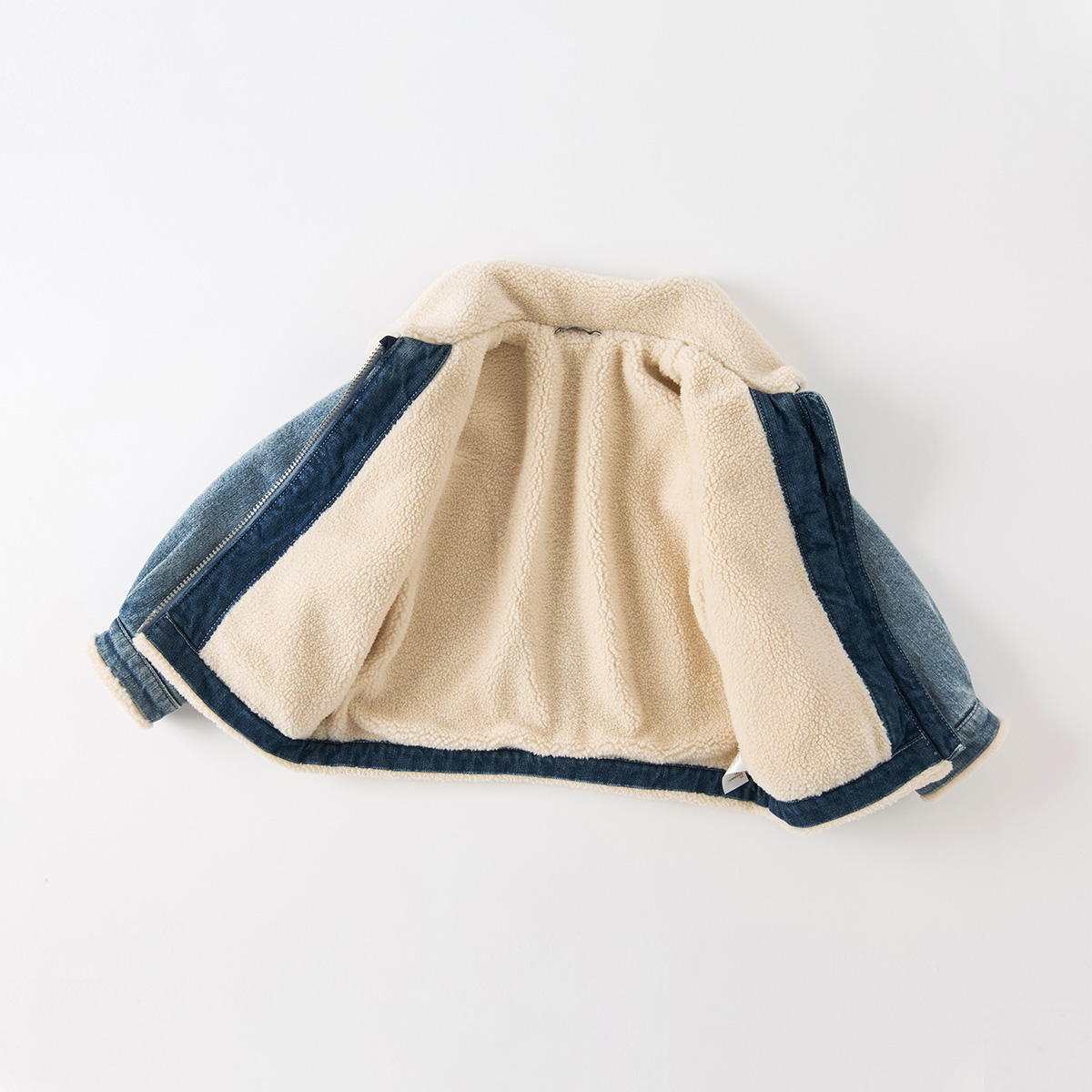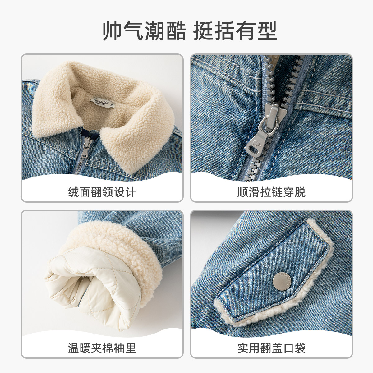 童装 戴维贝拉儿童加厚保暖外套冬装 男童加绒牛仔上衣 清仓特价