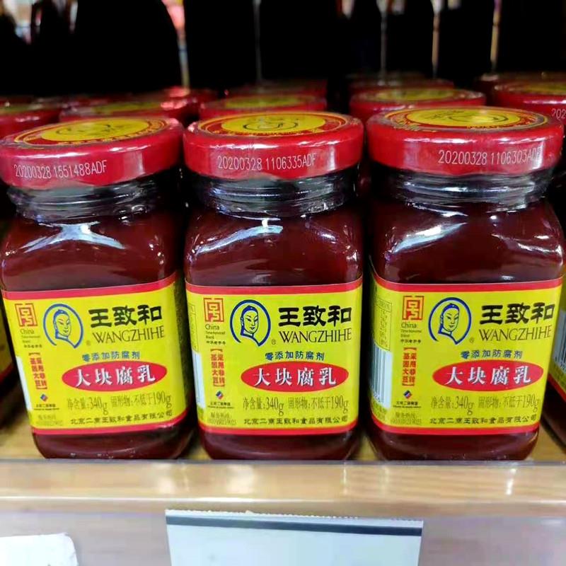 王致和大块腐乳340g1瓶 红方豆腐乳原味火锅蘸酱腐乳汁调味酱腐乳