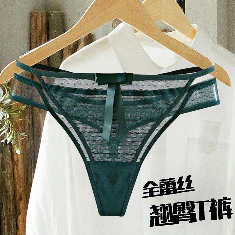 无痕弹力纯棉裆 翘臀镂空透明T内裤 运动性感欧美细带蕾丝丁字裤 女