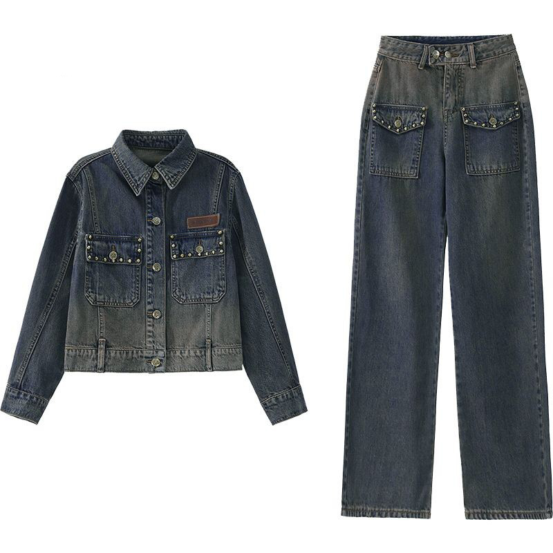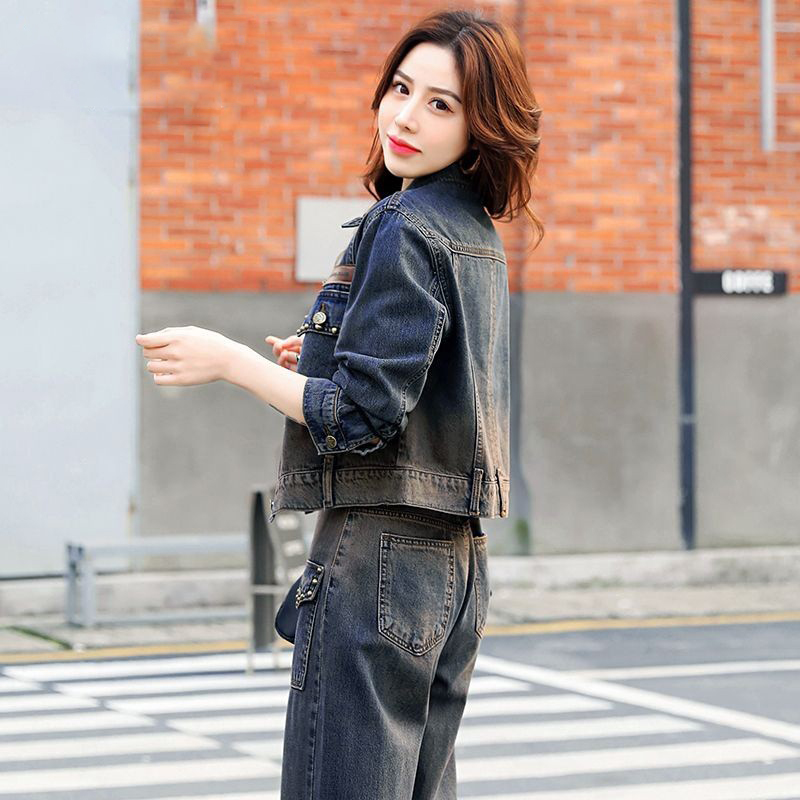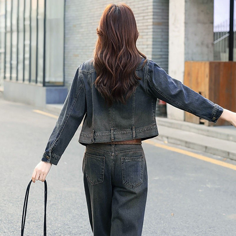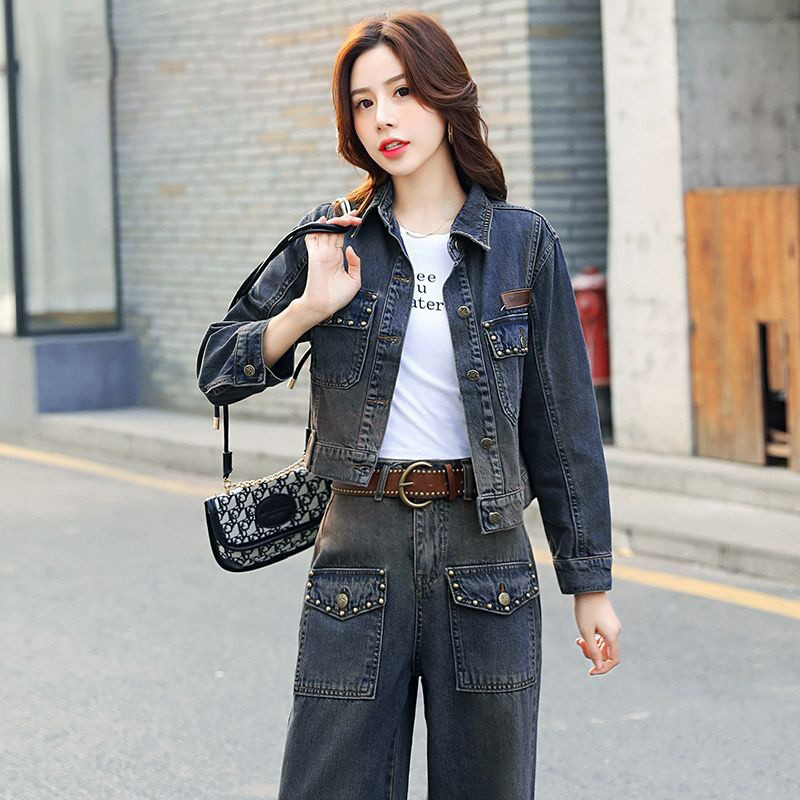 小个子气质女神范高级感套装 2024新款 秋牛仔外套两件套女洋气时尚