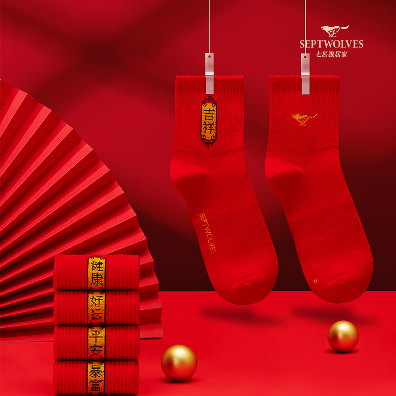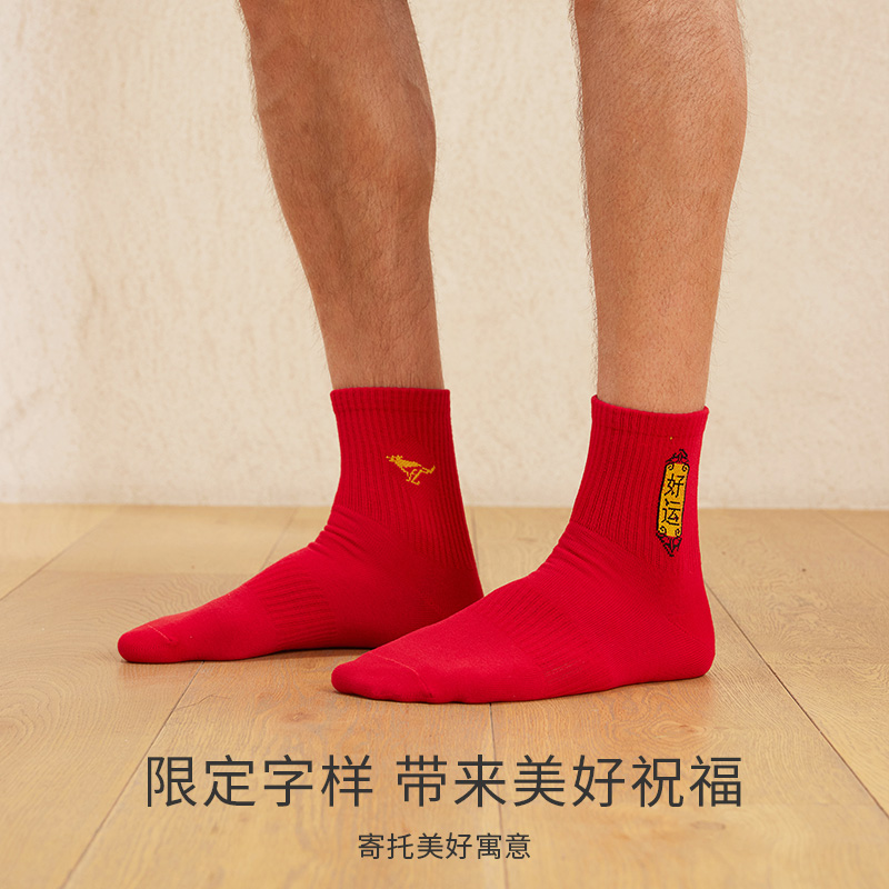 红袜子结婚情侣一对喜字女纯棉中筒袜新婚船袜大红色本命年蛇年男
