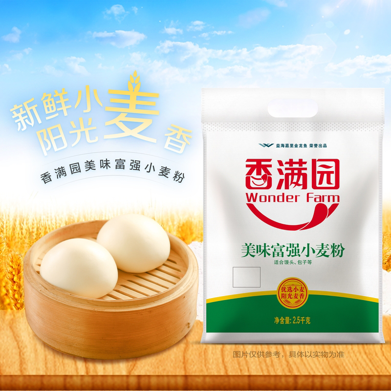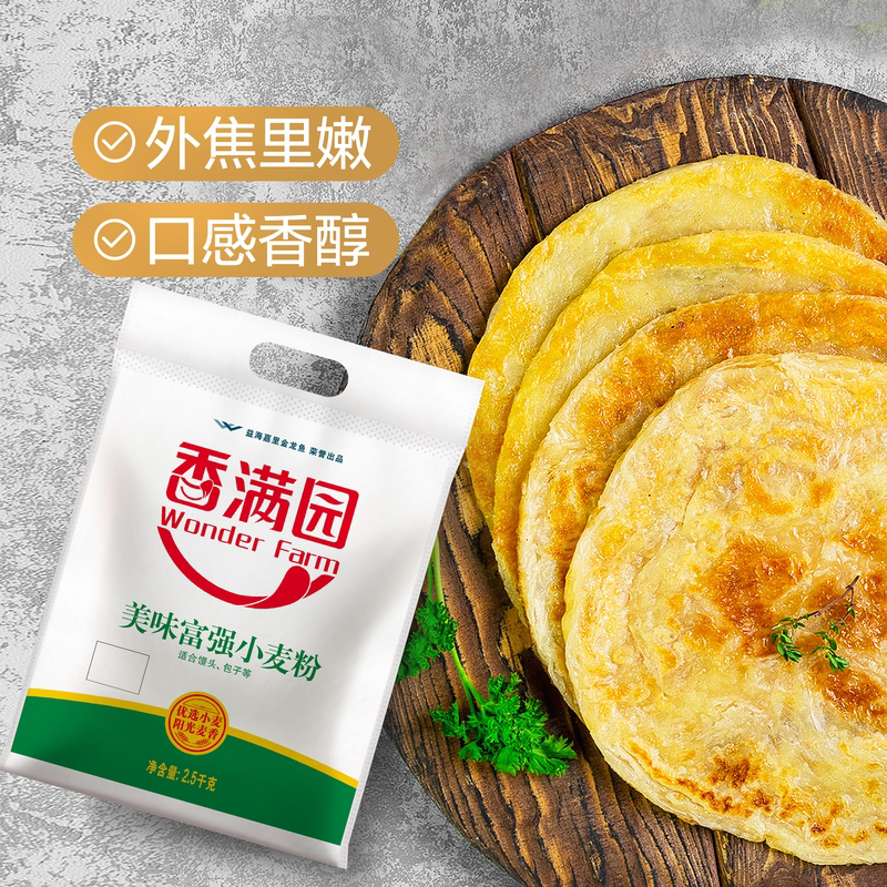 香满园美味富强小麦粉2.5kg中筋面粉5斤家用面条包子馒头饺子批发