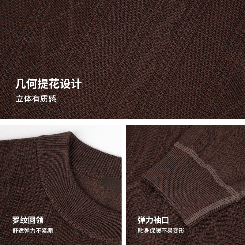 高端桑蚕丝内搭毛衣 新款 才子加绒加厚提花羊毛针织衫 男2025秋冬季