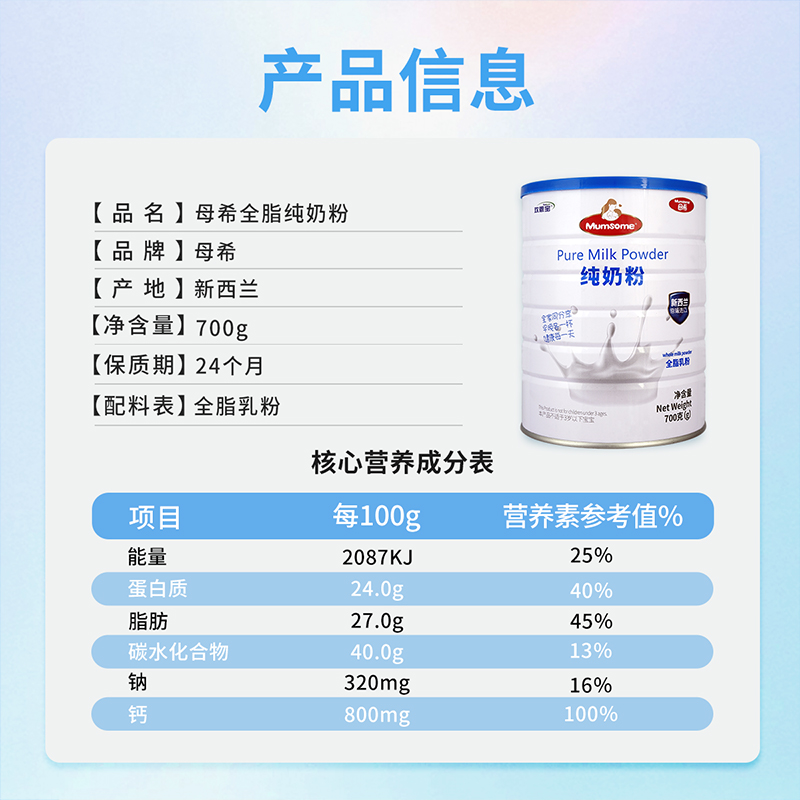 母希中老年高钙全脂奶粉成人孕妇营养学生成长 进口 新西兰原装