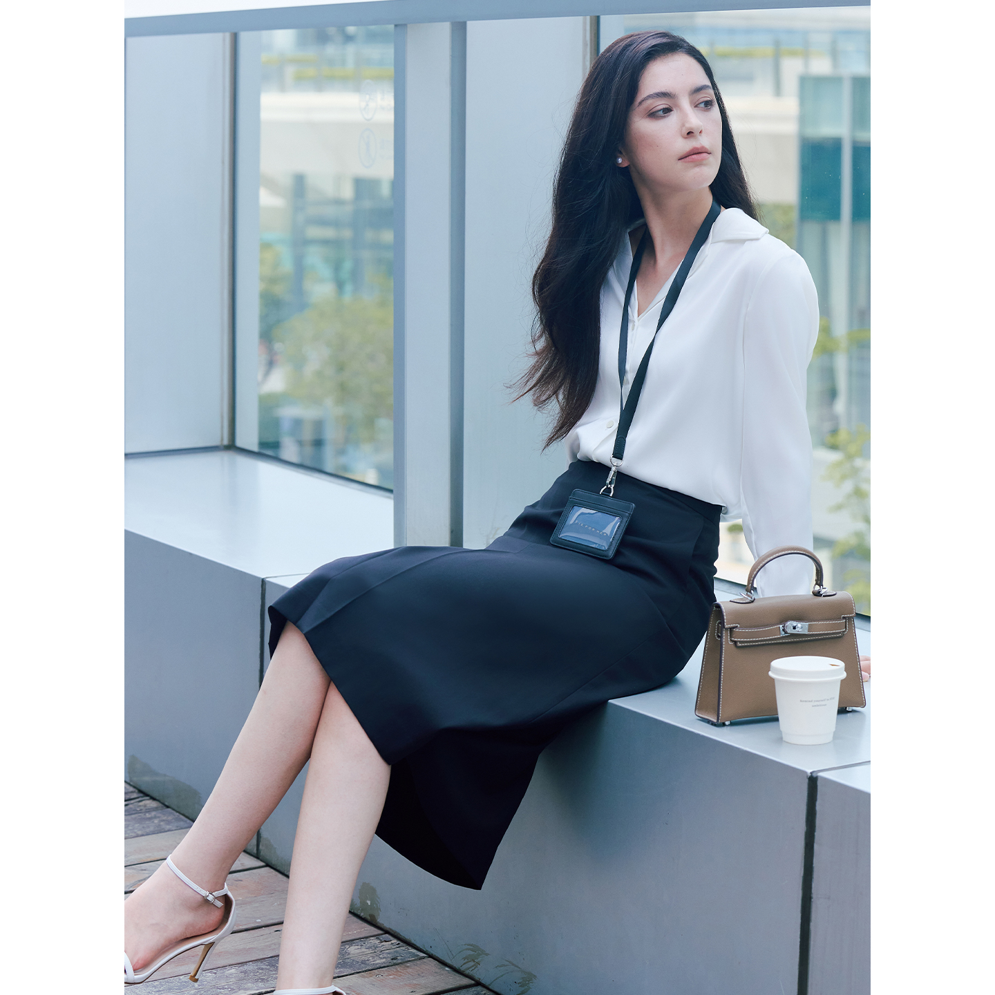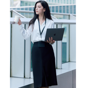 播商场同款 好看裙子BDS1BD1329 黑色开叉下摆半身裙女25春秋新款