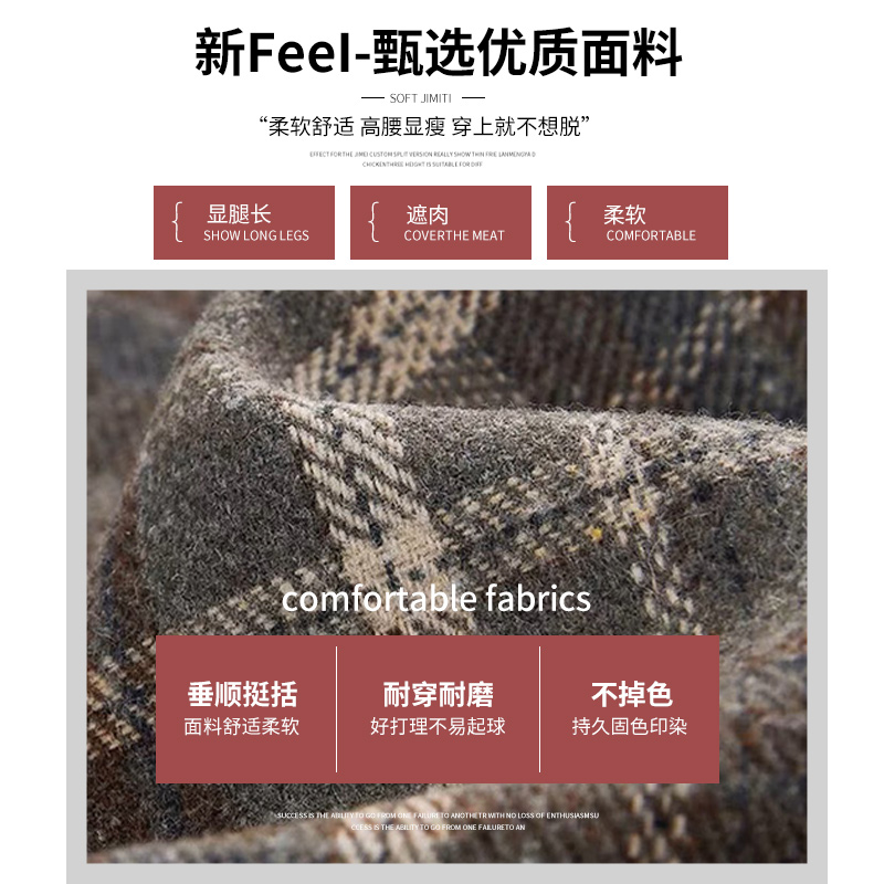 复古红色格子半身裙春秋短裙女高腰显瘦秋冬遮垮毛呢a字裙包臀裙