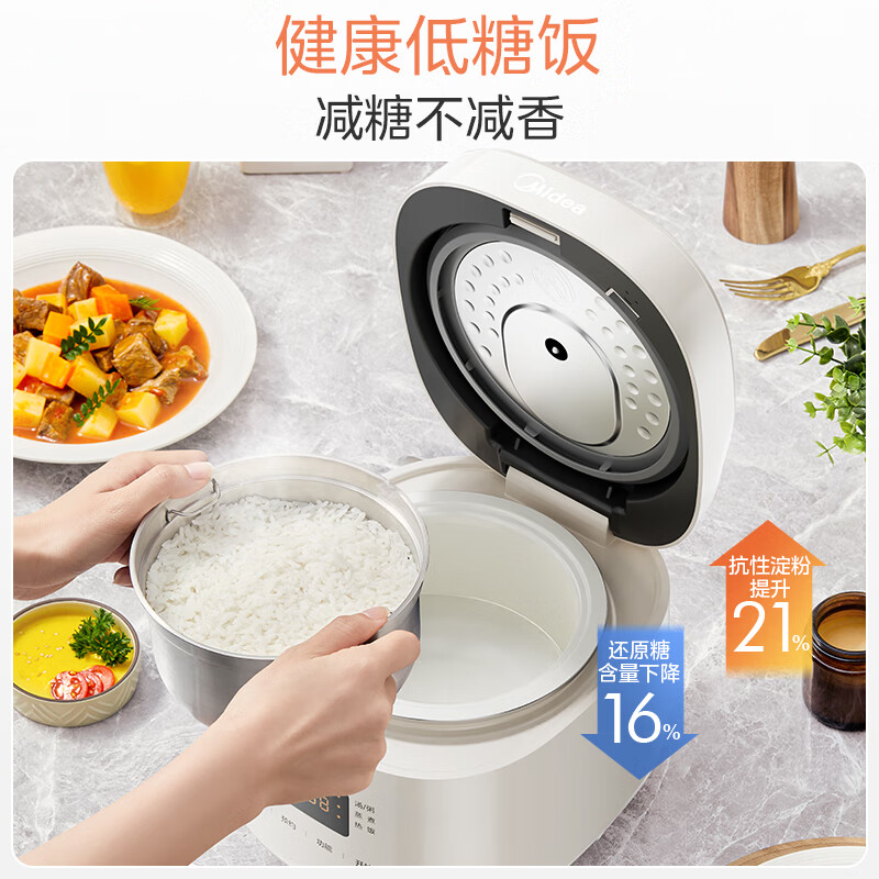 美 低糖电饭煲家用小型2一3人米汤分离不粘沥控糖蒸煮米锅预约2L