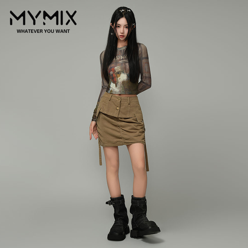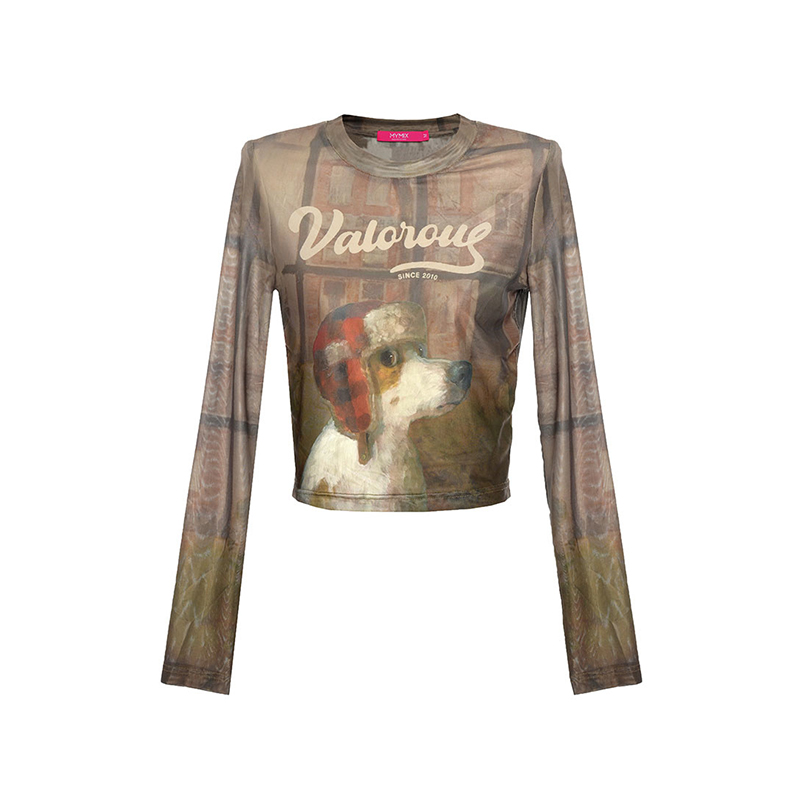 组合2024冬季 通勤图案圆领绿色长袖 新款 时尚 T恤 女装 MYMIX我