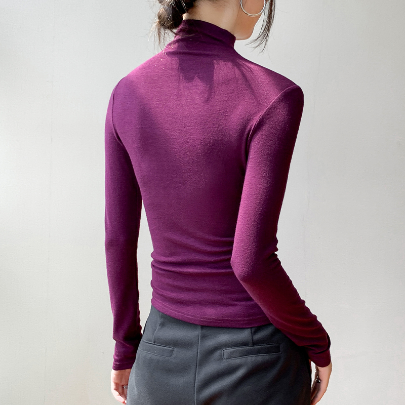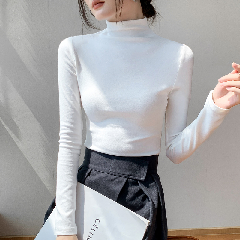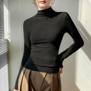 T恤女2025秋冬季 内搭抓绒打底衫 新款 显瘦西装 修身 半高领磨毛长袖
