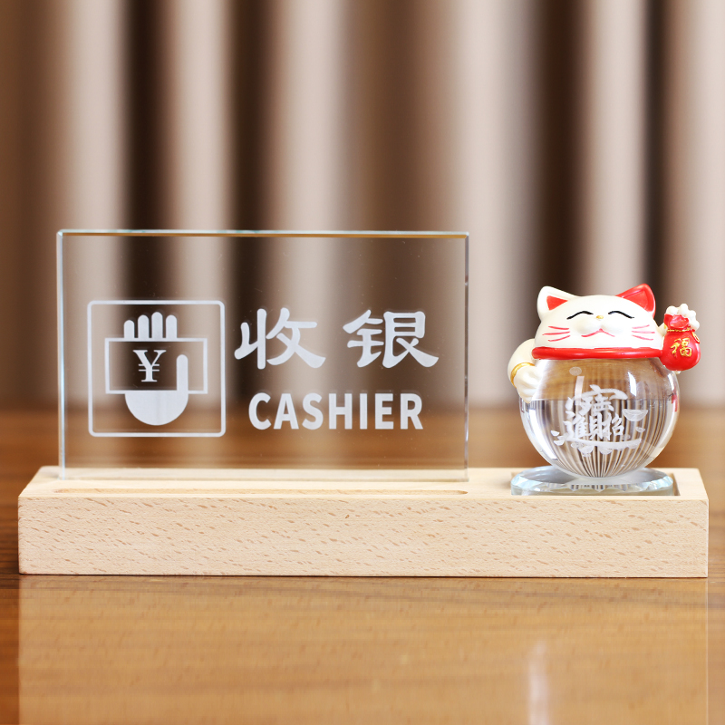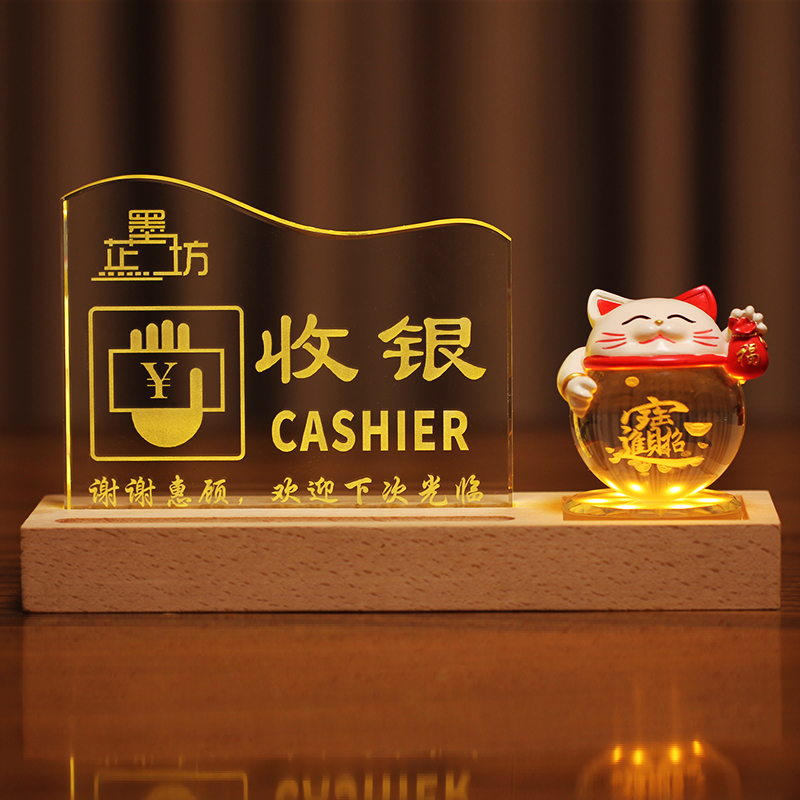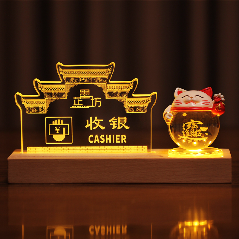 吧台收银前台接待指示牌酒店宾馆饭馆店铺开业礼物发光招财猫摆件