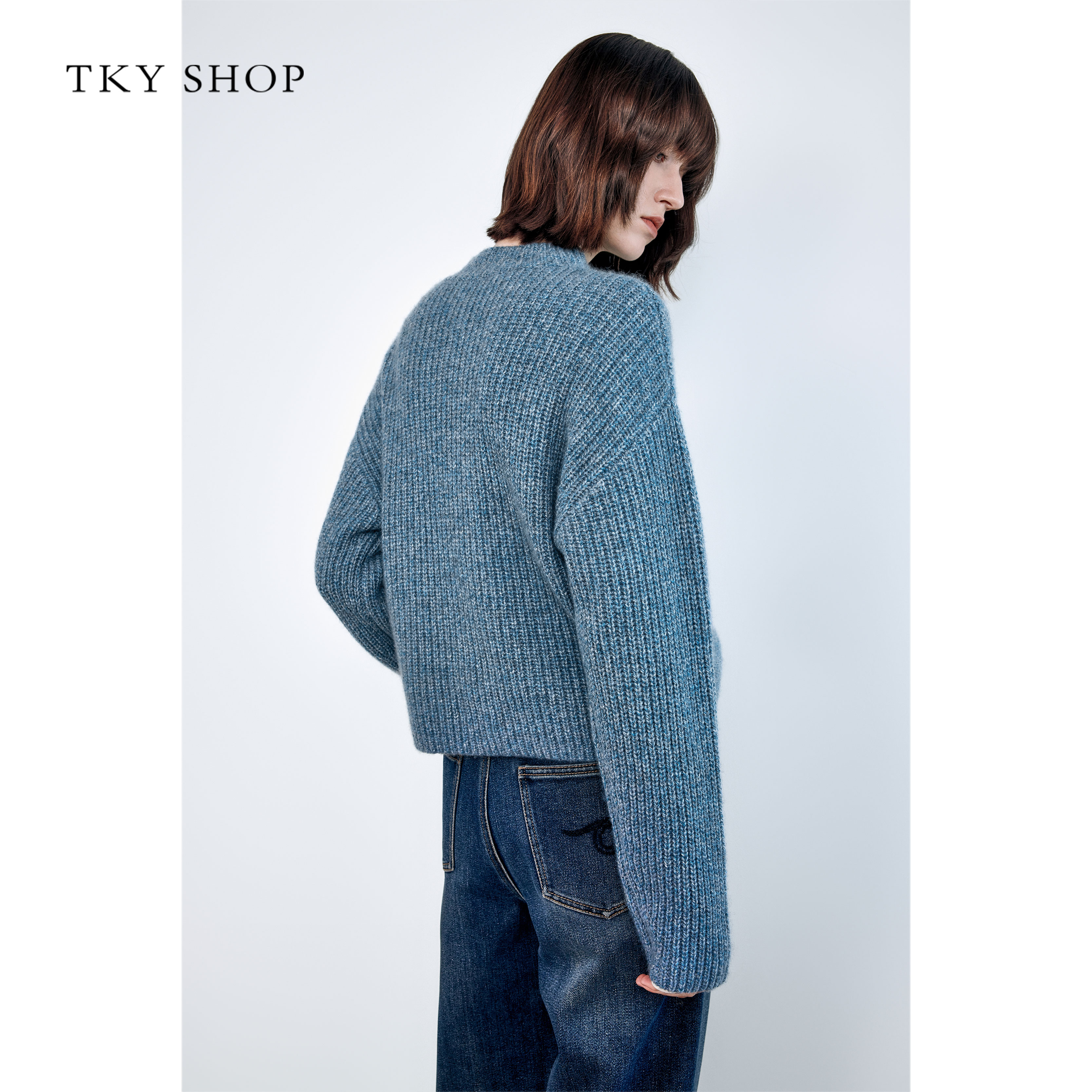 圆领上衣干爽真丝 早秋新品 OMITI省略 松弛极简桑蚕丝羊绒针织衫