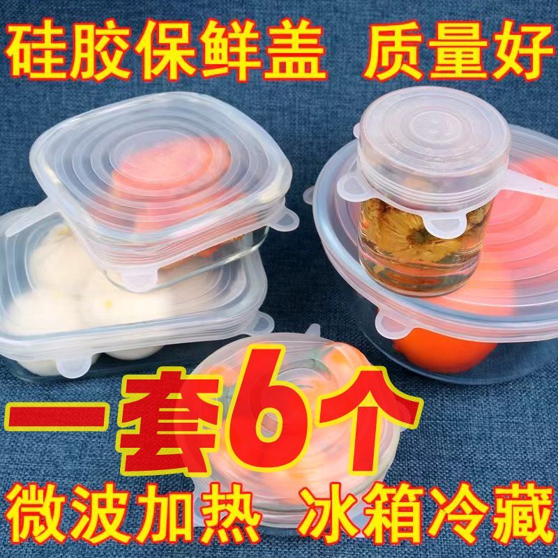 6件套硅胶保鲜盖密封保鲜膜圆形碗盖碟冷藏食品级加厚拉伸多功能