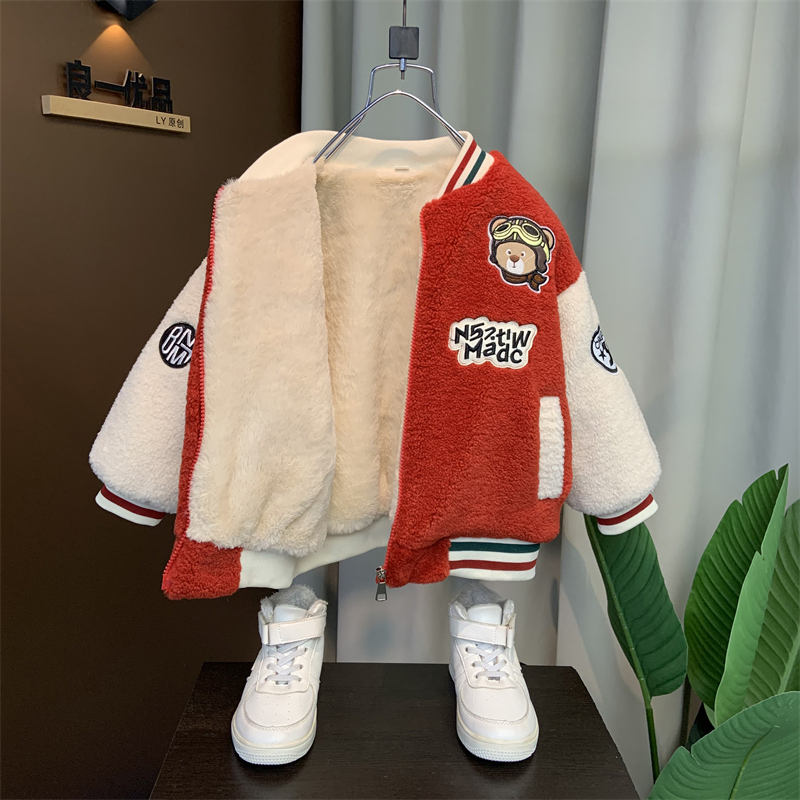 羊羔绒毛毛衣男孩加绒棒球服童装 男童冬季 外套儿童棉服男宝宝春季
