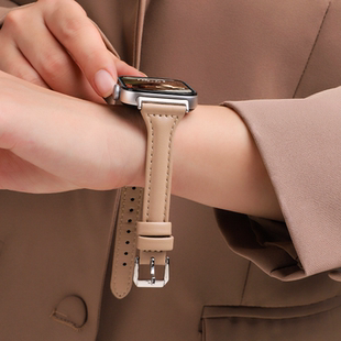 高级感ins皮质女生五代配件 智能替换带荣耀手表4运动男士 适用于荣耀手表5表带新款 真皮HONOR5腕带小蛮腰细款
